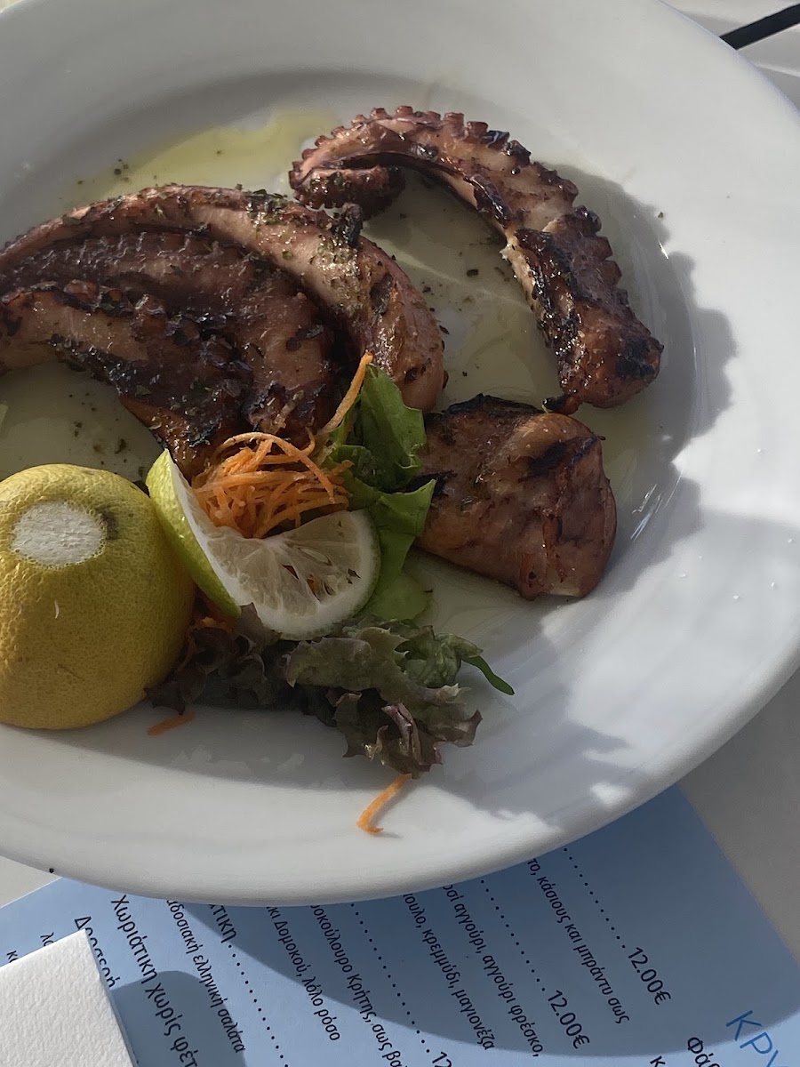 Enjoy a nice dinner at sunset in this restaurant. Nice staff and nice food, we really enjoyed the tzatziki which was one of the best we ever tried. Grilled fish was nice too but comes at a price in this place (most fish go for 70 euro kilo here) at “Argo” we paid 45 euro kilo for similar fish, but ofcourse you didn’t have the nice beach setting there